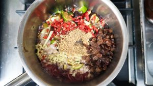 Add the chopped ingredients (figs, apple, chilli and ginger).